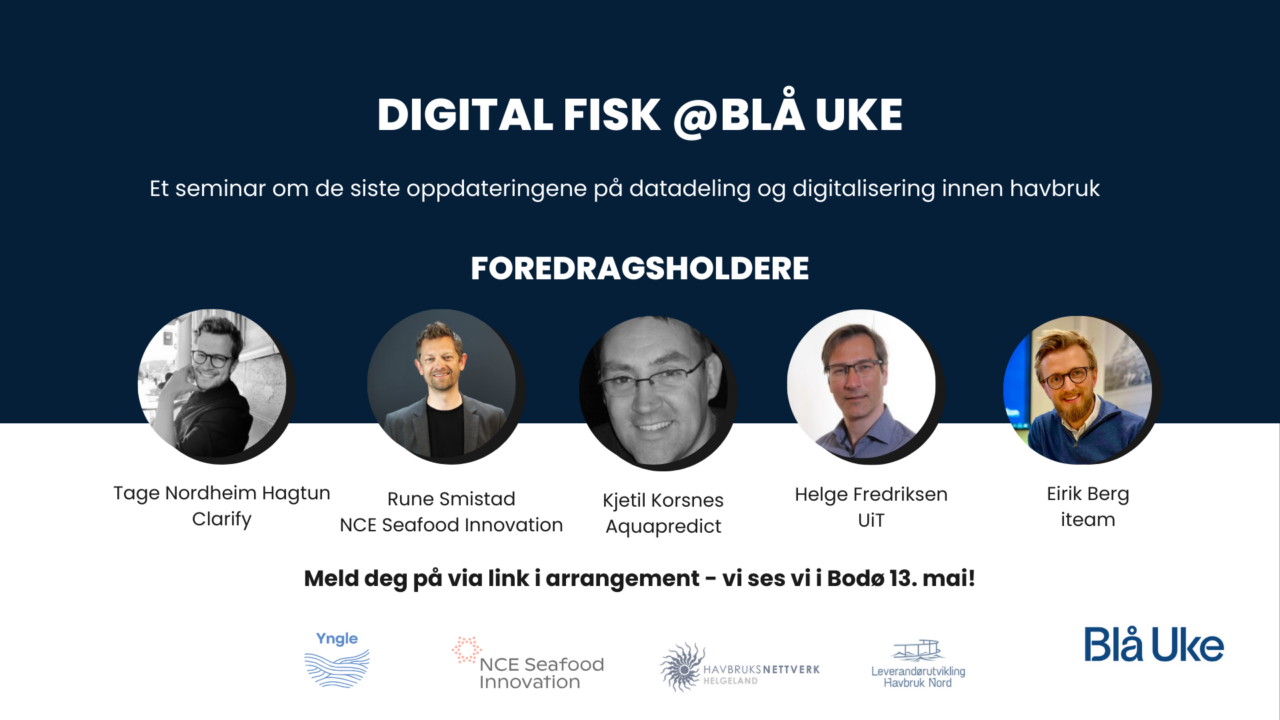 Leverandørnettverket Yngle, NCE Seafood Innovation, Havbruksnettverk Helgeland og Leverandørutvikling Havbruk Nord inviterer til fysisk seminar om digitalisering innen havbruk under Blå Uke i Bodø 13. mai.